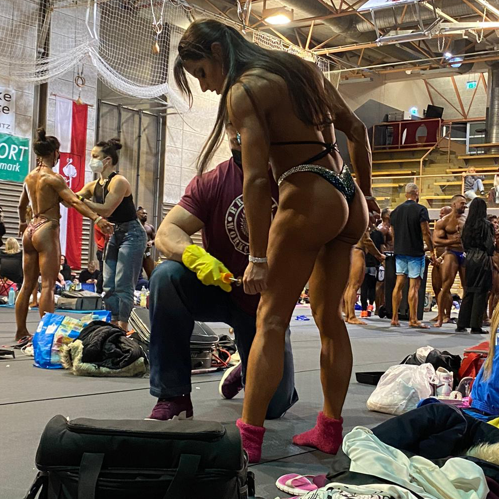 Hier hilft aber oft ein gutes Entwässerungsschema. Man kann auch während seiner Periode einen top Look auf die Bühne bringen. Also wirf die Nerven vorab nicht weg! Und wenn du bei diesem Wettkampf Pech hattest, dann sei dir sicher, dass auch Wettkämpfe kommen werden wo das „hormonelle Glück“ auf deiner Seite sein wird.
