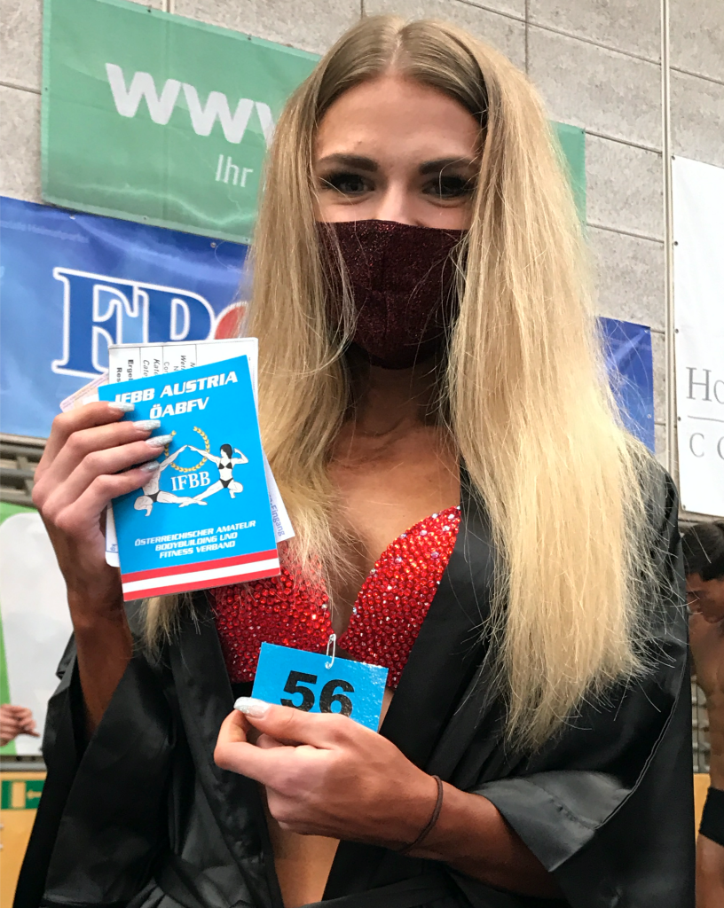 Zusätzlich zur Startnummer erhält jede/r AthletIn einen Eintrag in sein/ihr Startbuch (am Bild unten von der IFBB Austria). Hier werden die Platzierungen nach der Show vermerkt.
